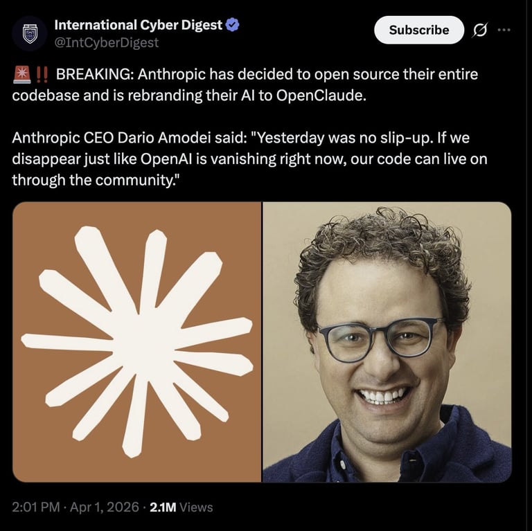 Anthropic az önce bombayı patlattı. Tüm kod tabanlarını açık kaynak haline getirmeye karar verdiler ve yapay zekalarını OpenClaude olarak yeniden markalaştırıyorlar. İnanılmaz değil mi?